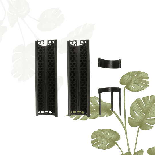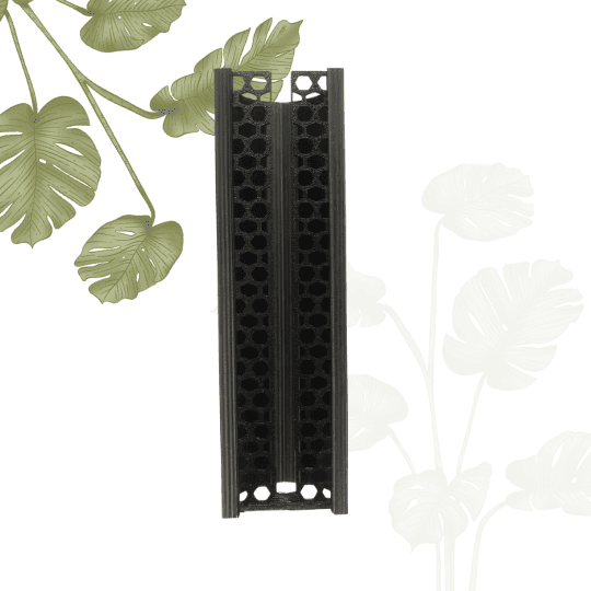 Tyczki są drukowane w technologii 3D z biodegradowalnego materiału, jakim jest PLA, dzięki czemu są przyjazne dla środowiska i trwałe. Dzięki wypełnieniu włóknem kokosowym, rośliny pnące lepiej rosną, a ich liście stają się większe i zdrowsze. Odpowiednie podparcie pozwala roślinom na optymalne rozłożenie energii i skuteczniejszy rozwój.